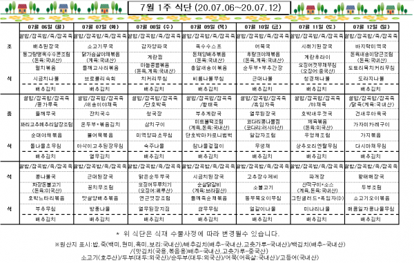 7월 1주 식단표