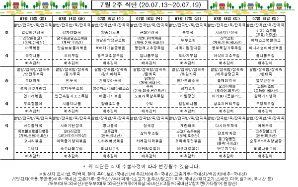 "금주의 식단 메뉴를 확인 할 수 있습니다."