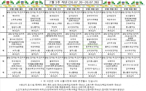 "금주의 식단 메뉴를 확인 할 수 있습니다."