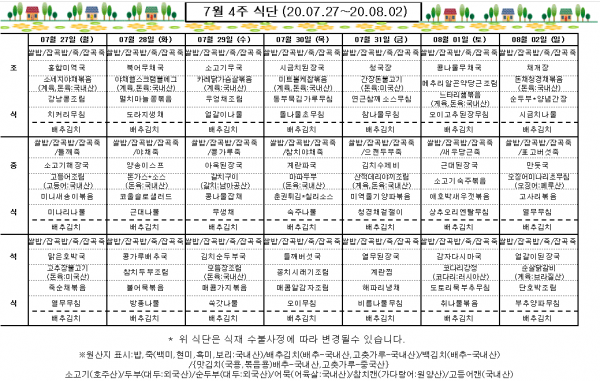 7월 4주 식단표