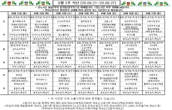 "금주의 식단 메뉴를 확인 할 수 있습니다."