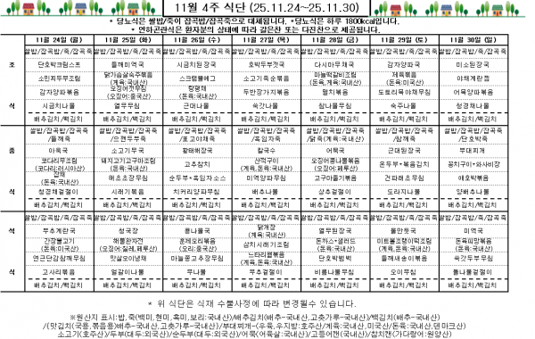 "금주의 식단 메뉴를 확인 할 수 있습니다."