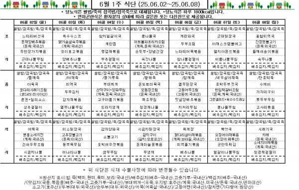 6월 1주 식단표