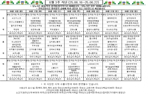 6월 3주 식단표