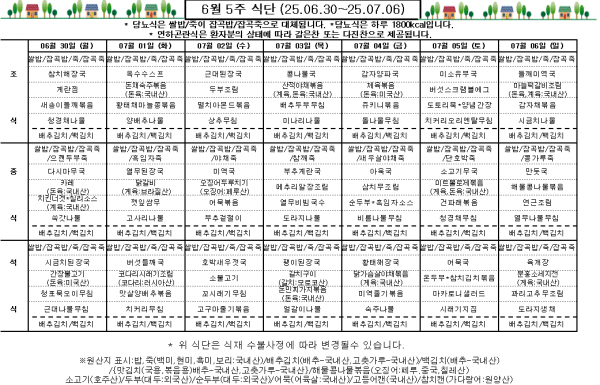 "금주의 식단 메뉴를 확인 할 수 있습니다."