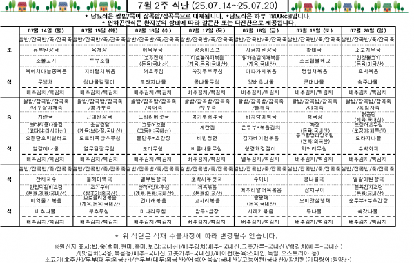"금주의 식단 메뉴를 확인 할 수 있습니다."