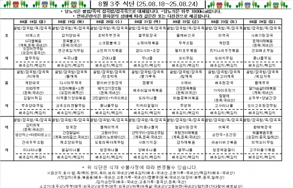 "금주의 식단 메뉴를 확인 할 수 있습니다."