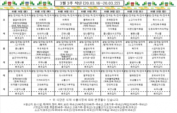"금주의 식단 메뉴를 확인 할 수 있습니다."