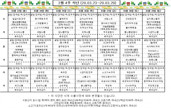 "금주의 식단 메뉴를 확인 할 수 있습니다."