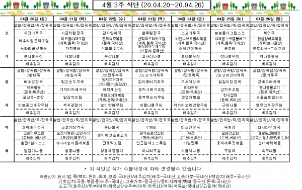 4월 3주 식단표