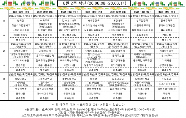 "금주의 식단 메뉴를 확인 할 수 있습니다."