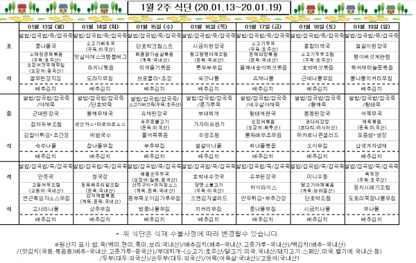 1월 2주 식단표