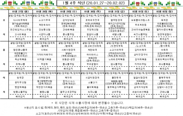 1월 4주 식단표