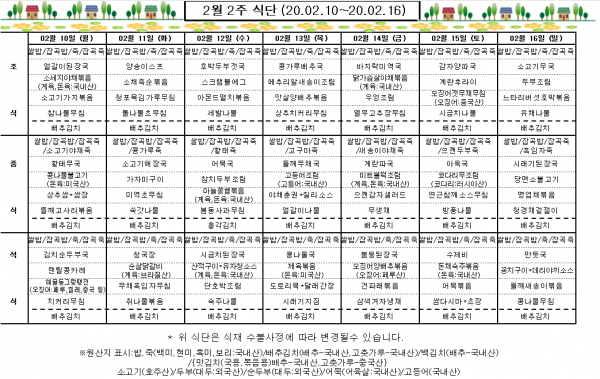 "금주의 식단 메뉴를 확인 할 수 있습니다."