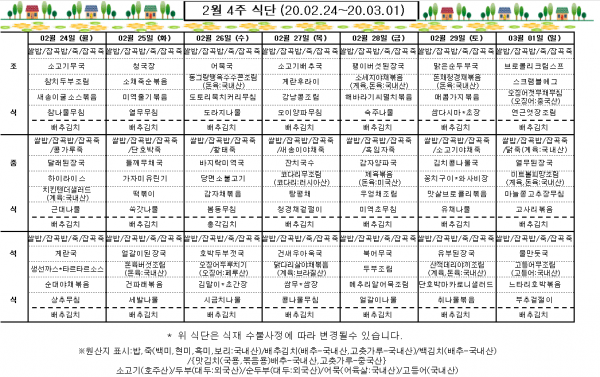 "금주의 식단 메뉴를 확인 할 수 있습니다."