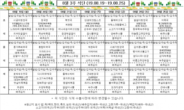 8월 3주 식단표
