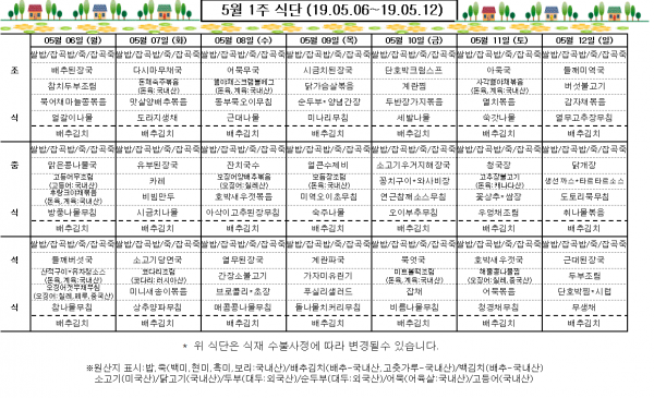 5월 1주 식단표