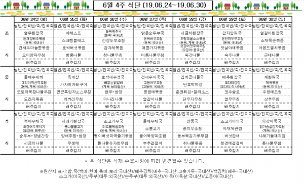 "금주의 식단 메뉴를 확인 할 수 있습니다."