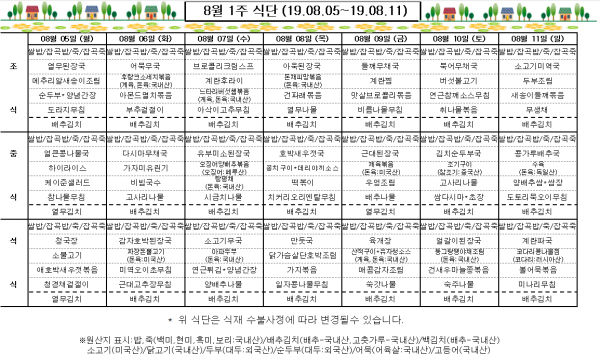 "금주의 식단 메뉴를 확인 할 수 있습니다."