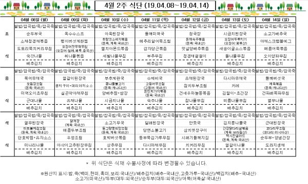 "금주의 식단 메뉴를 확인 할 수 있습니다."