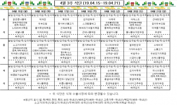 "금주의 식단 메뉴를 확인 할 수 있습니다."