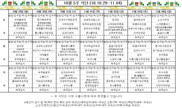 "금주의 식단 메뉴를 확인 할 수 있습니다."