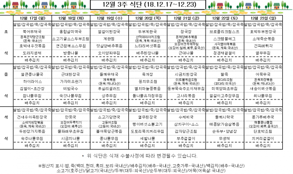 12월 3주 식단표