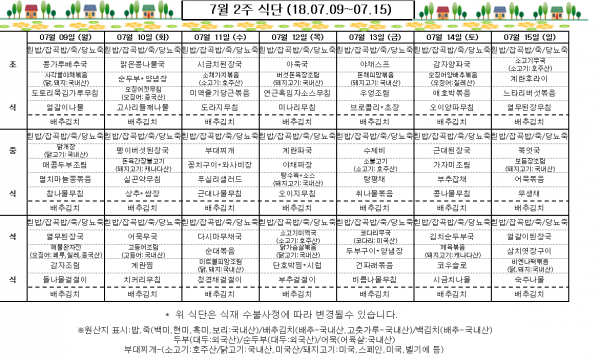 "금주의 식단 메뉴를 확인 할 수 있습니다."