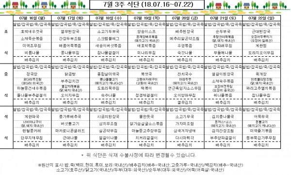 "금주의 식단 메뉴를 확인 할 수 있습니다."