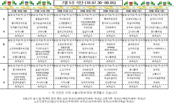 "금주의 식단 메뉴를 확인 할 수 있습니다."