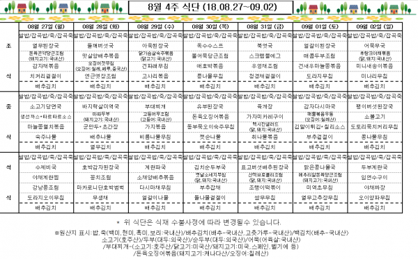 "금주의 식단 메뉴를 확인 할 수 있습니다."