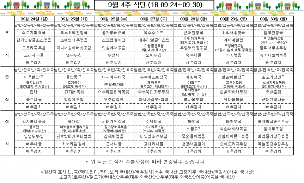 "금주의 식단 메뉴를 확인 할 수 있습니다."