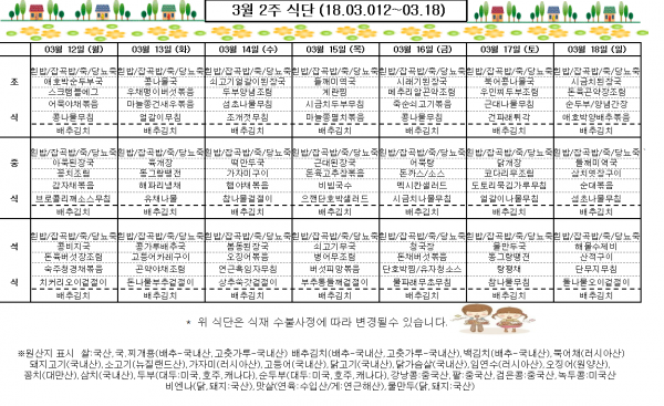 "금주의 식단 메뉴를 확인 할 수 있습니다."
