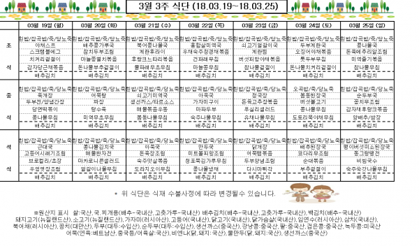 "금주의 식단 메뉴를 확인 할 수 있습니다."
