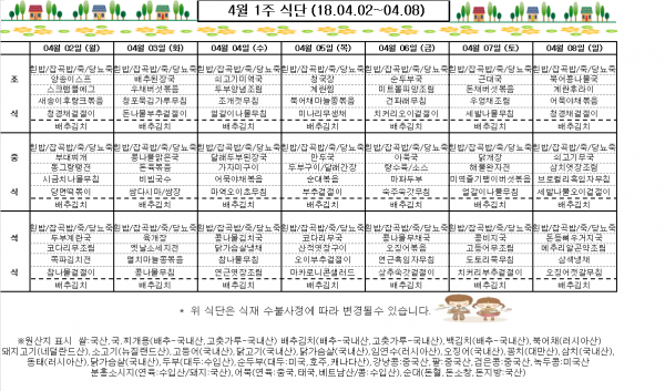"금주의 식단 메뉴를 확인 할 수 있습니다."