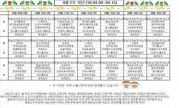 4월2주 식단표