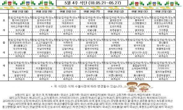 "금주의 식단 메뉴를 확인 할 수 있습니다."