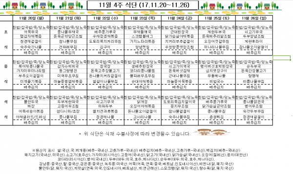 11월4주 식단표