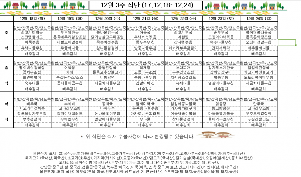 "금주의 식단 메뉴를 확인 할 수 있습니다."