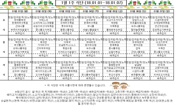 "금주의 식단 메뉴를 확인 할 수 있습니다."