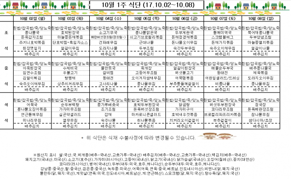 "금주의 식단 메뉴를 확인 할 수 있습니다."