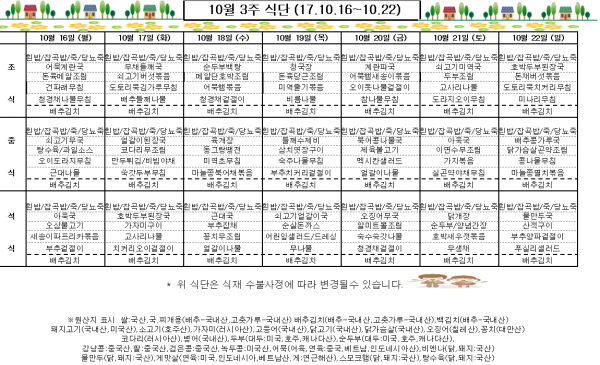 "금주의 식단 메뉴를 확인 할 수 있습니다."