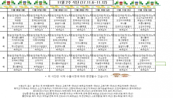 "금주의 식단 메뉴를 확인 할 수 있습니다."