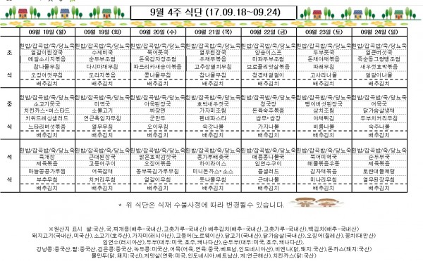 9월 4주 식단표