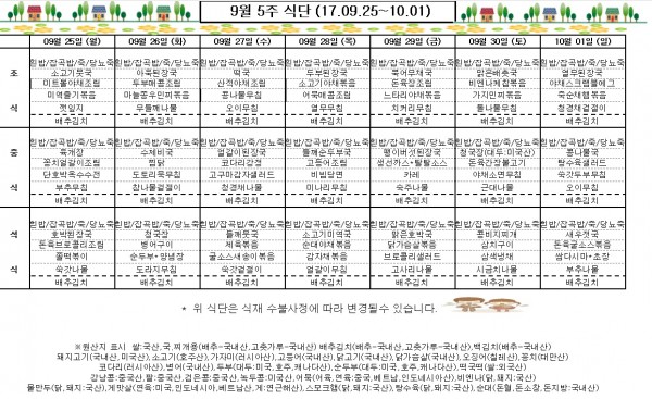 "금주의 식단 메뉴를 확인 할 수 있습니다."