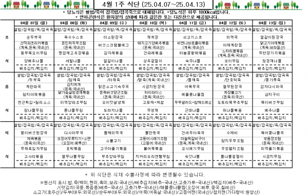 "금주의 식단 메뉴를 확인 할 수 있습니다."