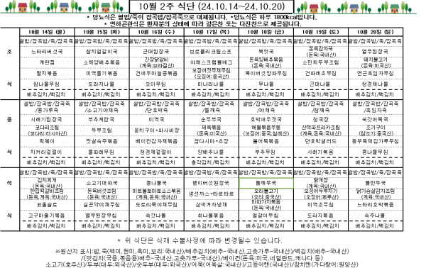 10월 2주 식단표