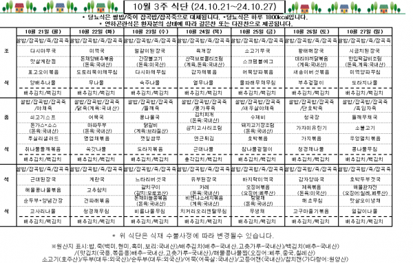 10월 3주 식단표