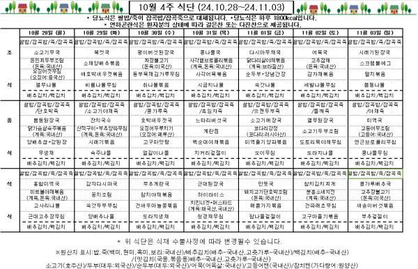 "금주의 식단 메뉴를 확인 할 수 있습니다."