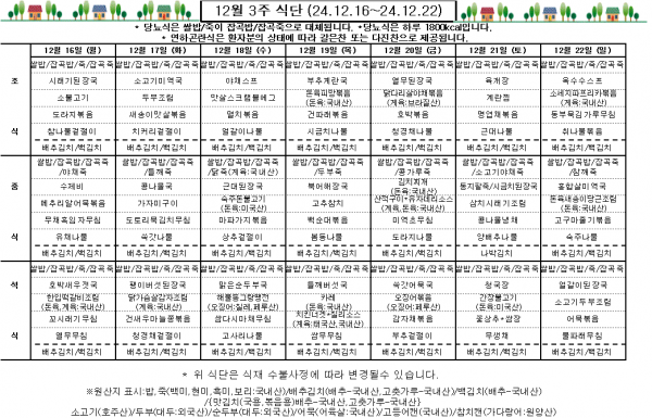 12월 3주 식단표